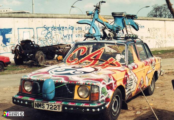 Seen 1991 near Paris heading to the UK , where he sold it to Rachel , who painted over the flames . Then it was used by Dave & Katie who painted out the jaws.. then appeared for sale in Devon in 2014 when owned by Daniel , by 2016 with Hannah & Ricky . Photo = Robin .