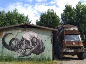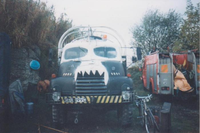 Seen 1994 Berlin . Similar to the Bedford bus also given the skull treatment by the Mutoids . Weighed in about 2000 .Photo = Dt. Steave .