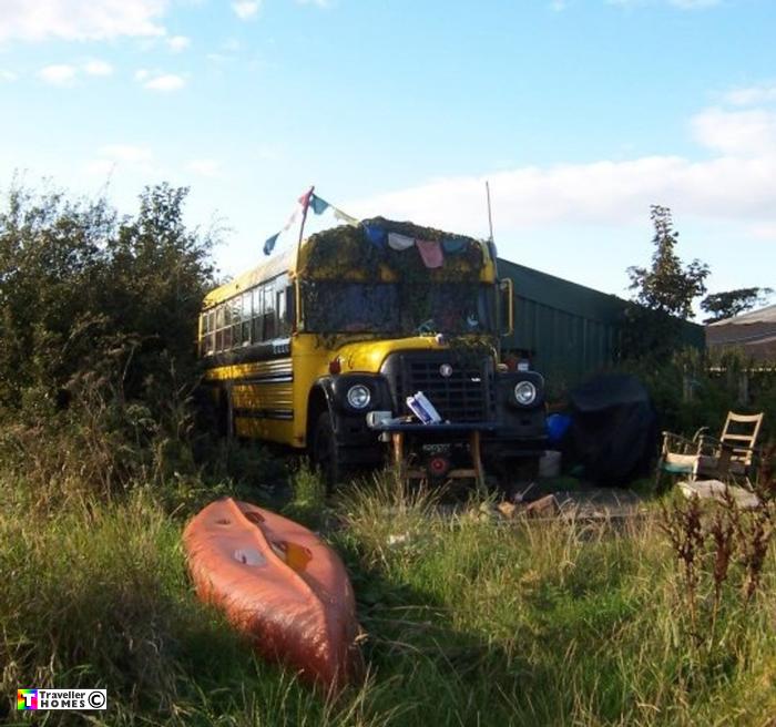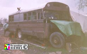 Seen 2002 Previously owned by Shax & Litlle Bean (Jack) . Due to engine problems Robin was moving the bus , it had been abandoned by the couple Chud'd sold it too & he rescued it , but vandals wrecked it . Photo = Robin