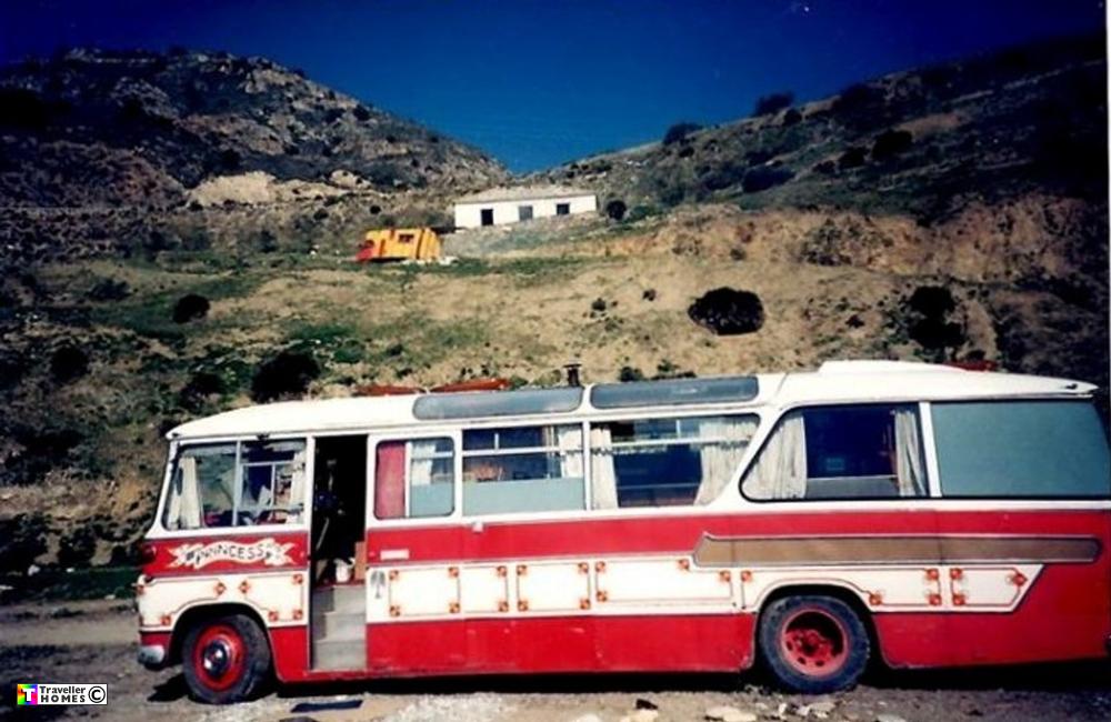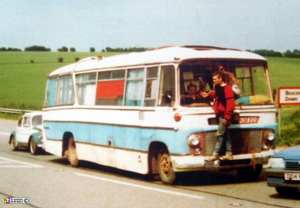 Seen 1989 Cornwall . Here it was a family home to Damien , Lynn , Oli & Jai . Then sold to Jim by 1991 & with Rob The Didge in 1994 . But burnt out Henparcau Farm which also destroyed Helen The Hat's bus . Photo = Dean