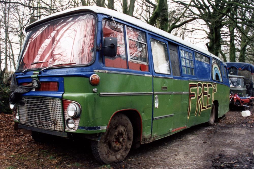 Seen 8.7.93 Borrowden Lane . Ketton . Leics. Showing the post 5am site raid repairs by Bill & Adam after riot cops had trashed all the rear windows after finding the front door locked ! Last noted on a Devon farm c2008 ? Photo = Dave Fawcett