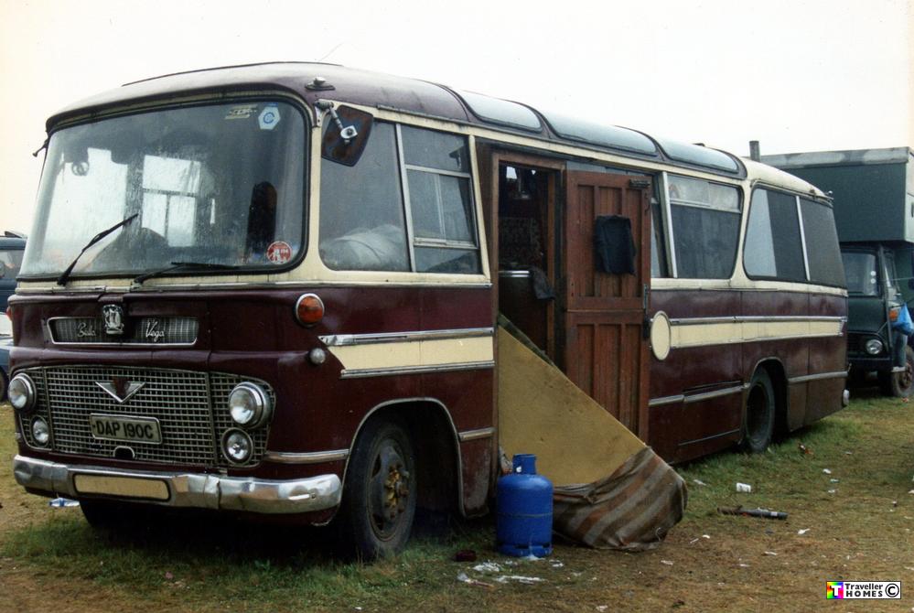 Seen 5.5.91 Hungerford Common Festival . Berks . Originally bought by Tom c1982 , sold to Ganesh Bob , then Pete before being lived in by John & Ceryn & finally by Dave & Kate until 1994 . Photo = Dave Fawcett .
