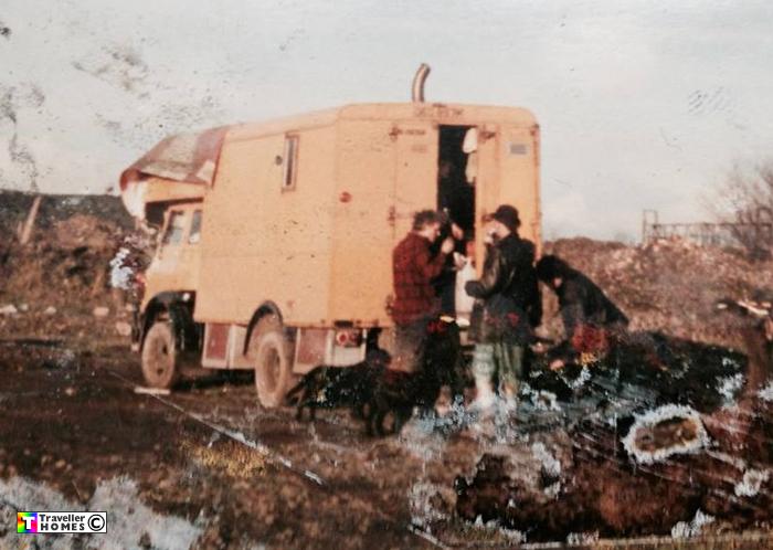 Seen 1989 Pilton . Somerset . Sold to Angie by Marie-Claire in 1988 , but she later bought it back in 2009 after Angie had stored it after using it as a home until 2004 . Now in need of a new cab to get it roadworthy again . Photo = Gary Conway .