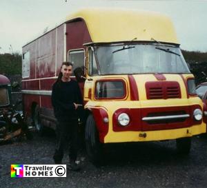 Seen 30.1.92 Clifton Campville . Staffs . Converted in Notts. c1982/3 & owned by John & Janet , then Geoff before passing into Phil's hands . Jo's trailer can be seen behind it . Photo = Dave Fawcett
