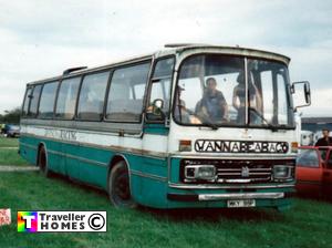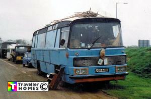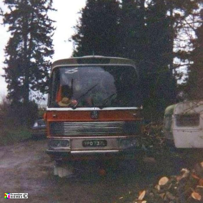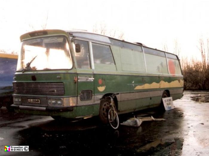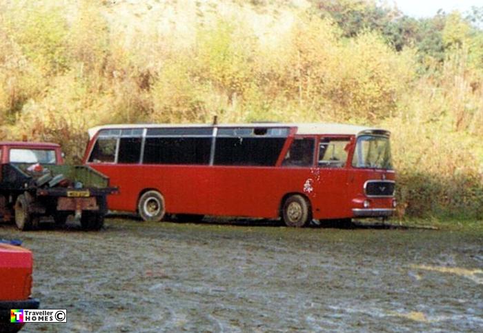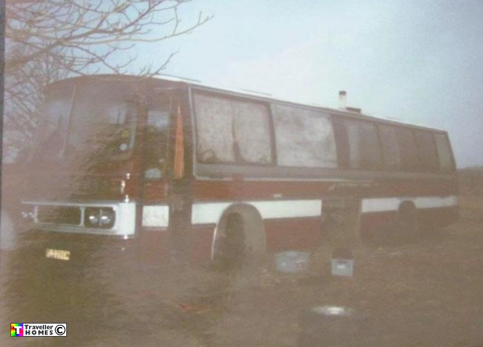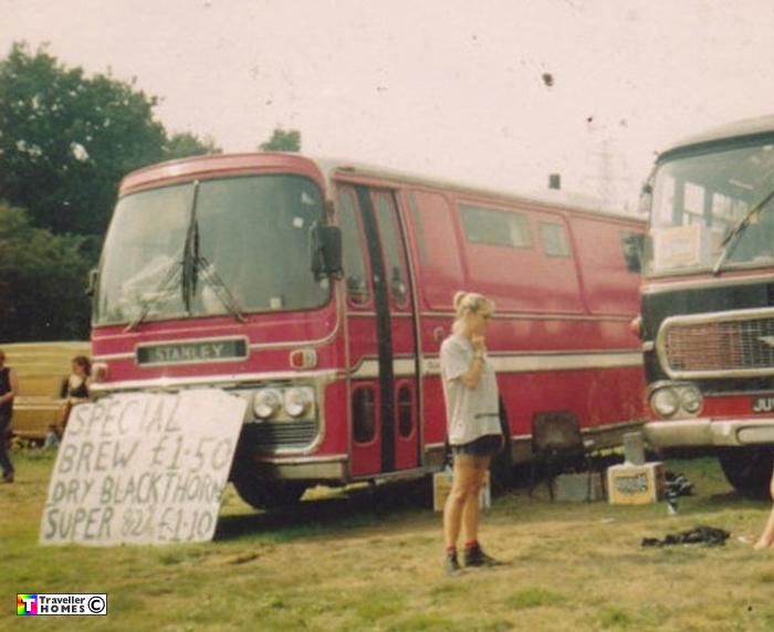 Seen 1992 Poynton Brickworks . His bus later featured in part 6 of the 1992 Glastonbury video on youtube passing a thug in uniform ... he lfet it in a field in Cork , Ireland & by 2016 it's window's were all trashed . Photo = Gibo