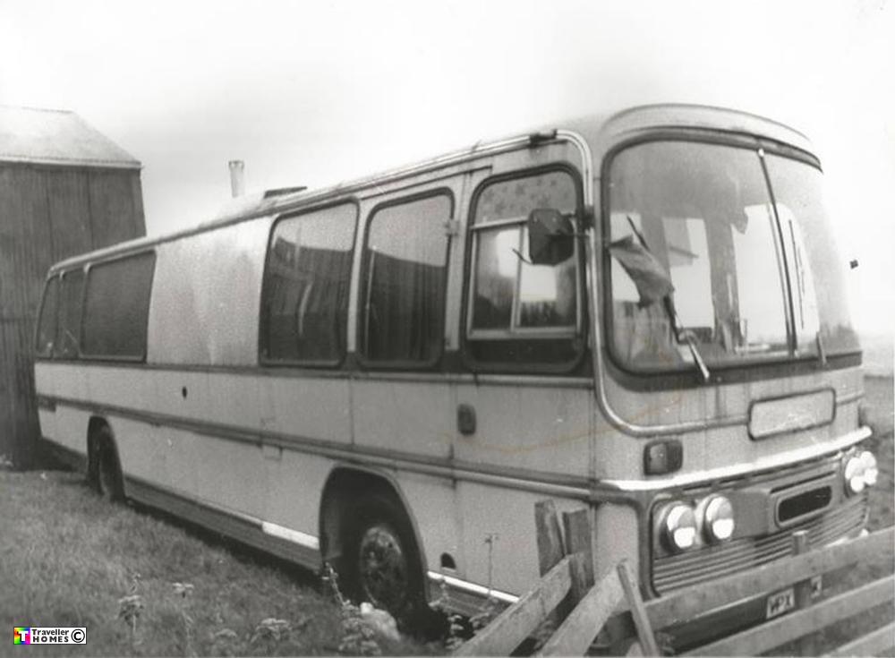 Seen ? . After Hill it was used by Moxon's of Worksop , then named Timber Queen as a sawmill's staff bus , then a Scout Group ... now a home ! Photo = Gary Conway .