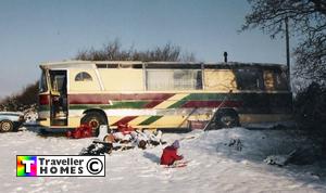 Seen ' 95 . Ireland .Before Liz owned the coach it had previously been used by a racing team in Ireland . Liz hoped it was later used by another traveller , but fears it was scrapped instead after a dodgy deal she wasn't in on !... Photo = Liz.