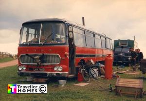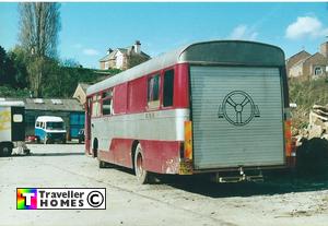 Seen 24.3.92 Clifton Campville . Staffs. Bought by the Levellers Band from 'Rat'in South London in 1990 & used as their 1st tour bus until the engine blew up & it was towed to a Derbyshire scrapyard ... where I assume Gavin must have bought it from ? He later sold it to Sarah , for her family , but was sadly she was a hit & run road victim in November 1992 . The coach was then driven south in 1993 by Ollie (Jen's partner) & not sure what finally became of it ? Photo = Dav Fawcett