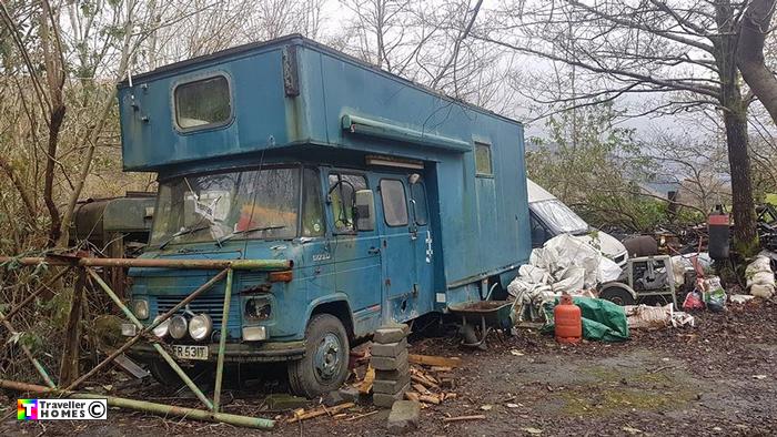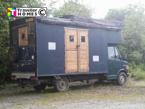 Seen 28.10.95 Arvigna (09) Ariege . France . Looks like a German workman's hut had been cut down to fit onto the chassis ? Photo = Dave Fawcett