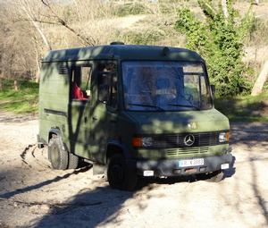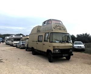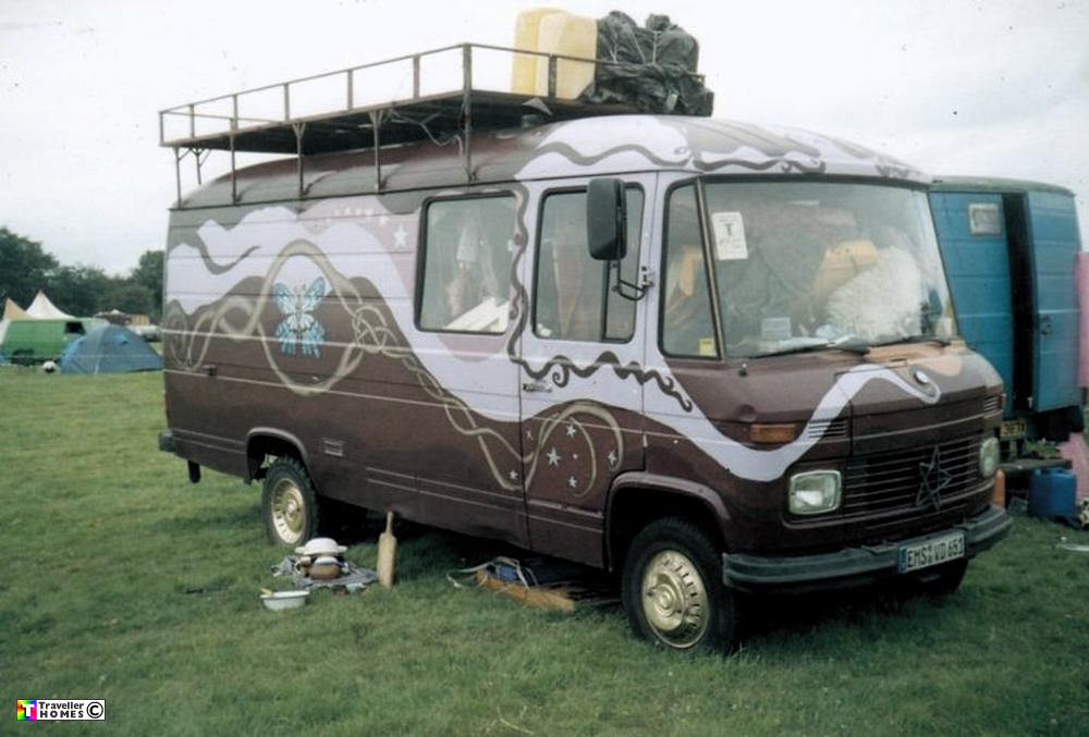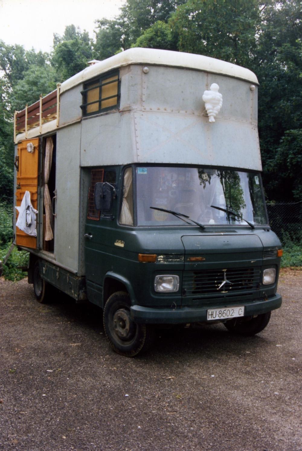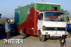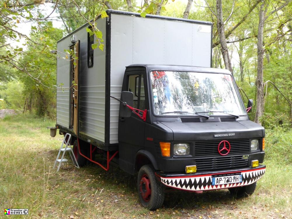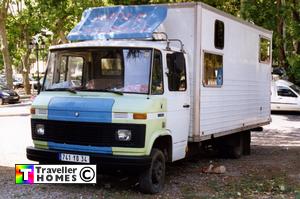 Seen 23.6.02 Clairmont l'Herault (34) Herault . France . This is a Mercedes coach-built rig rather than a french hippy bodge-together ! Photo = Dave Fawcett