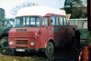 Seen 19.6.90 Pilton . Somerset . Fitted with a spectacle recovery unit . Billy had bought it from a Scottish garage at Canoustie then sold it to Jeff & Pip after they'd used it to weigh in scrap cars at Hulme . Jeff then swapped it at Pilton for a fire tender . Photo = Dave Fawcett